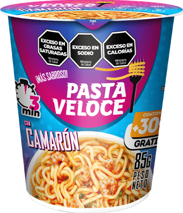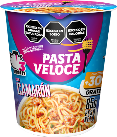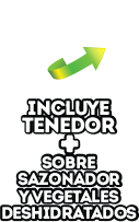 Ingredientes: Harina de trigo enriquecida según ley 25.630 (sulfato ferroso: 30 mg/kg, ácido fólico: 2.2 mg/kg, tiamina (vitamina B1): 6.3 mg/kg, riboflavina (vitamina B2): 1.3 mg/kg y niacina: 13 mg/kg), almidón modificado, aceite de palma refinado, sal, ESP (INS415), ACREG (INS451i, INS339ii), EST (INS452i), EMU (INS422, INS322), COL (INS160ai, INS100i), maltodextrina. Aderezo: saborizante de pollo, zanahoria, chauchas liofilizadas, maíz liofilizado, maltodextrina, azúcar, sal, EXA (INS621), aceite de pollo. CONTIENE DERIVADOS DE TRIGO Y SOJA.