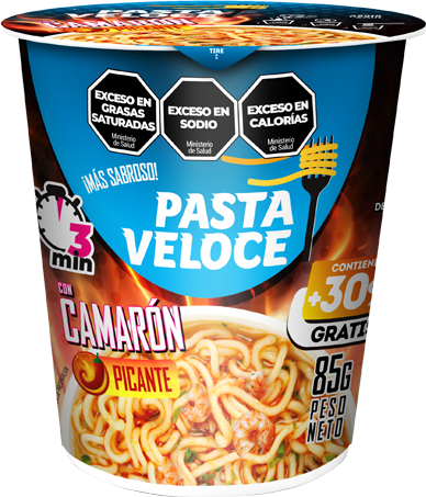 Ingredientes: Harina de trigo enriquecida según ley 25.630 (sulfato ferroso: 30 mg/kg, ácido fólico: 2.2 mg/kg, tiamina (vitamina B1): 6.3 mg/kg, riboflavina (vitamina B2): 1.3 mg/kg y niacina: 13 mg/kg), almidón modificado, aceite de palma refinado, sal, ESP (INS415), ACREG (INS451i, INS339ii), EST (INS452i), EMU (INS422, INS322), COL (INS160ai, INS100i), maltodextrina. Aderezo: saborizante de pollo, zanahoria, chauchas liofilizadas, maíz liofilizado, maltodextrina, azúcar, sal, EXA (INS621), aceite de pollo. CONTIENE DERIVADOS DE TRIGO Y SOJA.