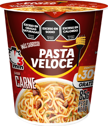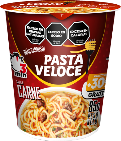 Ingredientes: Harina de trigo enriquecida según ley 25.630 (sulfato ferroso: 30 mg/kg, ácido fólico: 2.2 mg/kg, tiamina (vitamina B1): 6.3 mg/kg, riboflavina (vitamina B2): 1.3 mg/kg y niacina: 13 mg/kg), almidón modificado, aceite de palma refinado, sal, ESP (INS415), ACREG (INS451i, INS339ii), EST (INS452i), EMU (INS422, INS322), COL (INS160ai, INS100i), maltodextrina. Aderezo: saborizante de pollo, zanahoria, chauchas liofilizadas, maíz liofilizado, maltodextrina, azúcar, sal, EXA (INS621), aceite de pollo. CONTIENE DERIVADOS DE TRIGO Y SOJA.